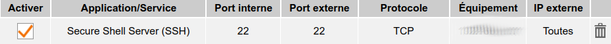 Toujours dans les paramètres avancés, trouver le paramétrage des règles de flux (NAT) et configurer l'accès SSH port 22 vers l'ordinateur cible.